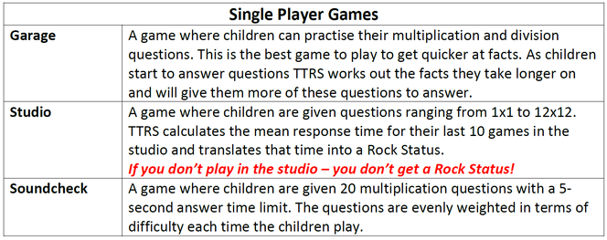 When it comes to times tables, speed and accuracy are important – the more facts your child remembers, the easier it is for them to do harder calculations. Times Table Rock Stars (TTRS) is a fun and challenging programme designed to help students master the times tables! To be a Times Table Rock Star you need to answer any multiplication fact up to 12×12 in less than 3 seconds!